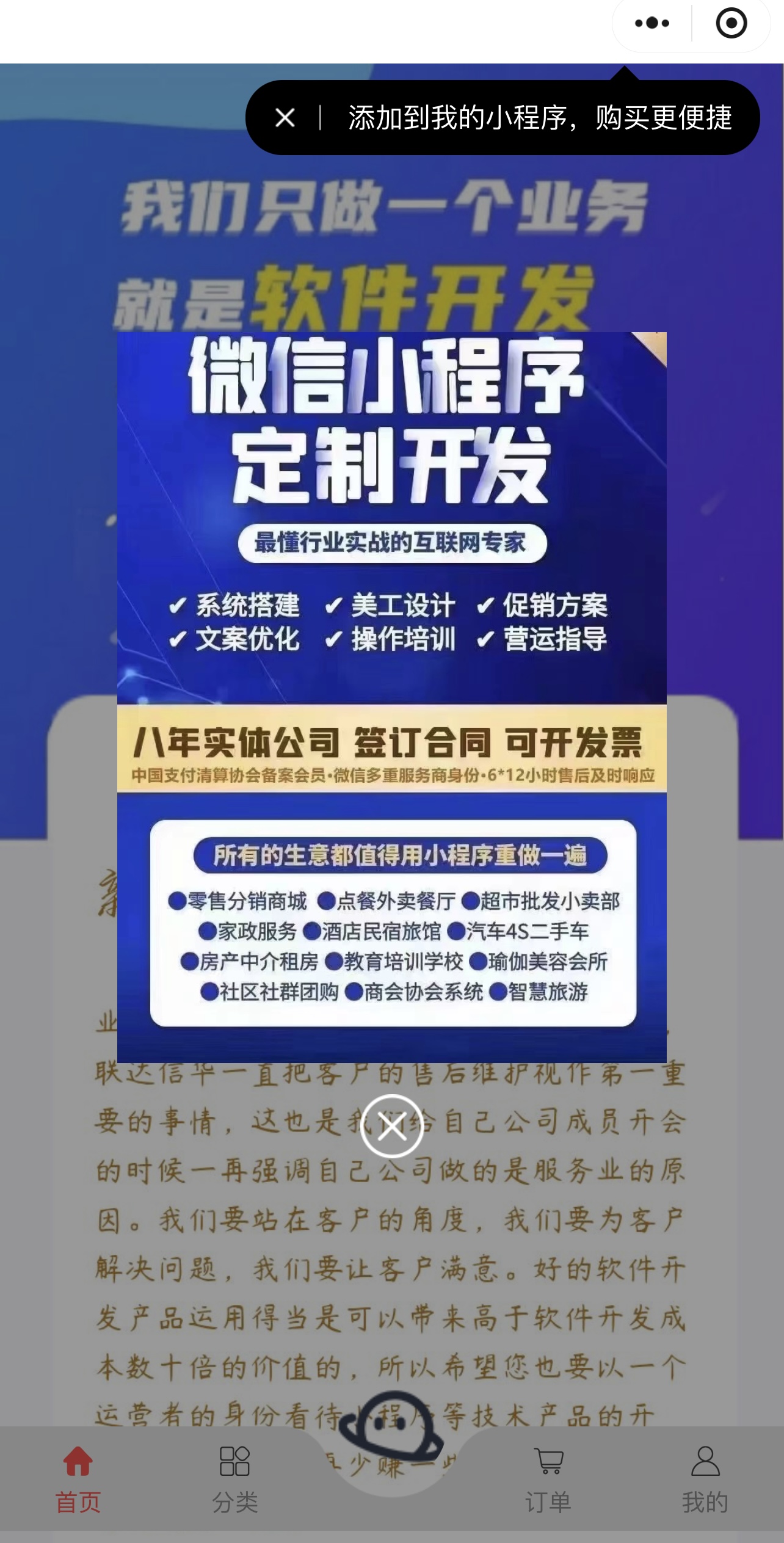 微信小程序,小程序的一种,英文名Wechat Mini Program,是一种不需要下载安装即可使用的应用,它实现了应用“触手可及”的梦想,用户扫一扫或搜一下即可打开应用